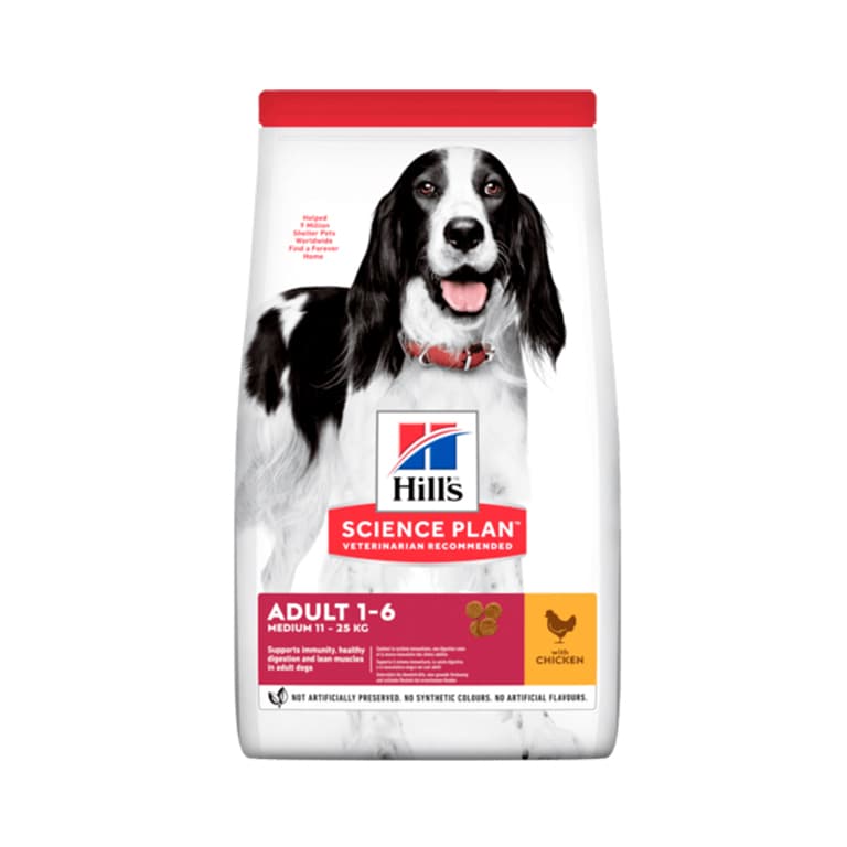 HILL’S SCIENCE PLAN Medium Adult dog food with Chicken is specially formulated to fuel the energy needs of dogs during the prime of their life. Made with high quality, easy-to-digest ingredients.